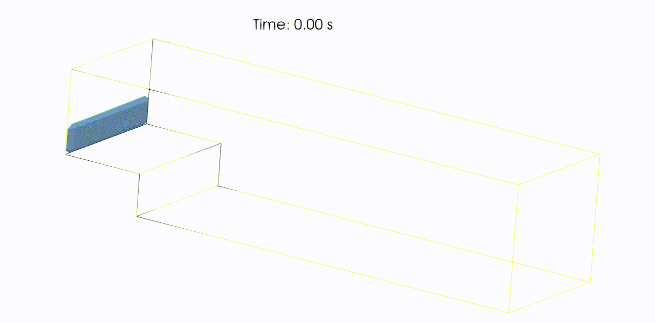 Vícefázová simulace (voda - vzduch) s využitím přístupu VOF ("Volume of Fluid"): 3 výpočetní sítě o různém počtu konečných objemů, tj. o různém rozlišení.